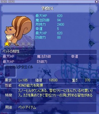 可愛らしい雪松リスというペットが手に入るそうなのですが、